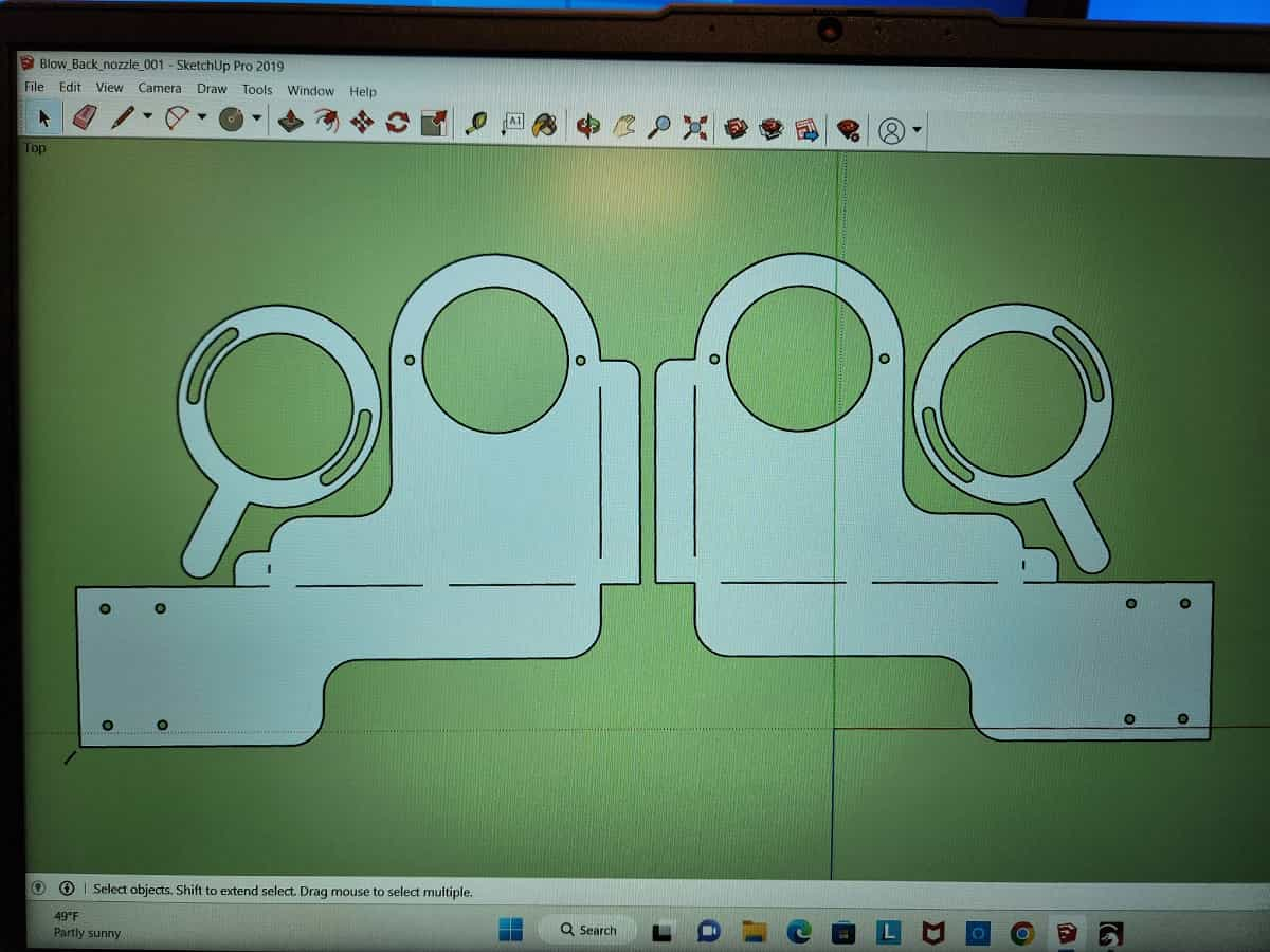 This design is of an Air Knife for preventing water from getting onto our knew float table soon to be installed. I designed this in CAD and cut out the flat stock on our waterjet. This is using a 3hp blower motor.