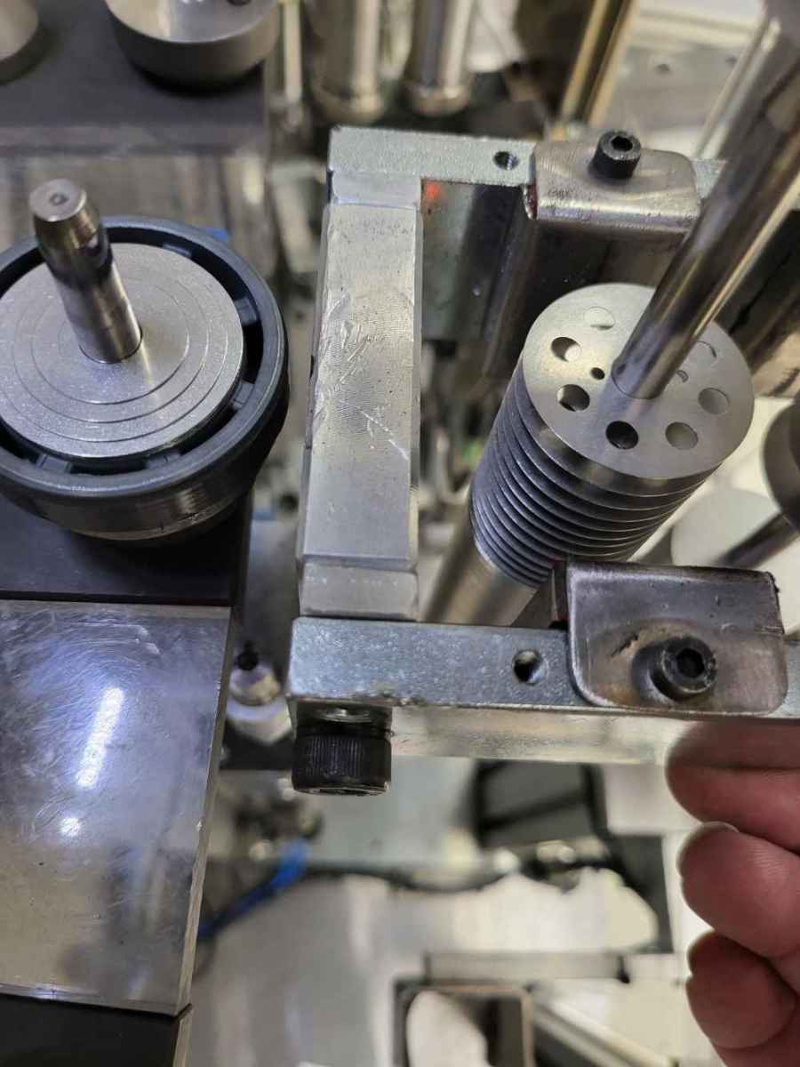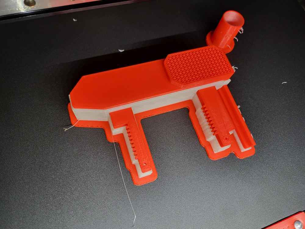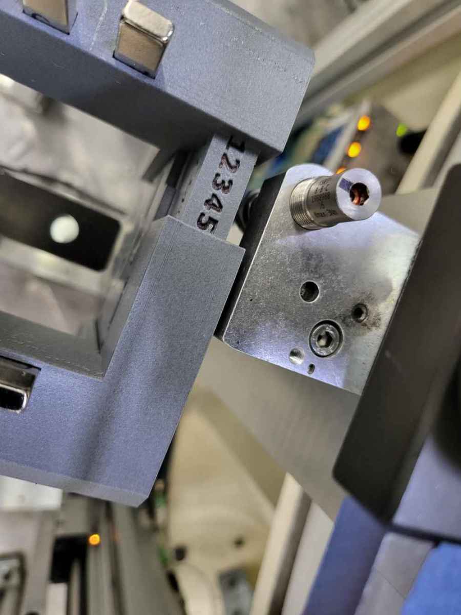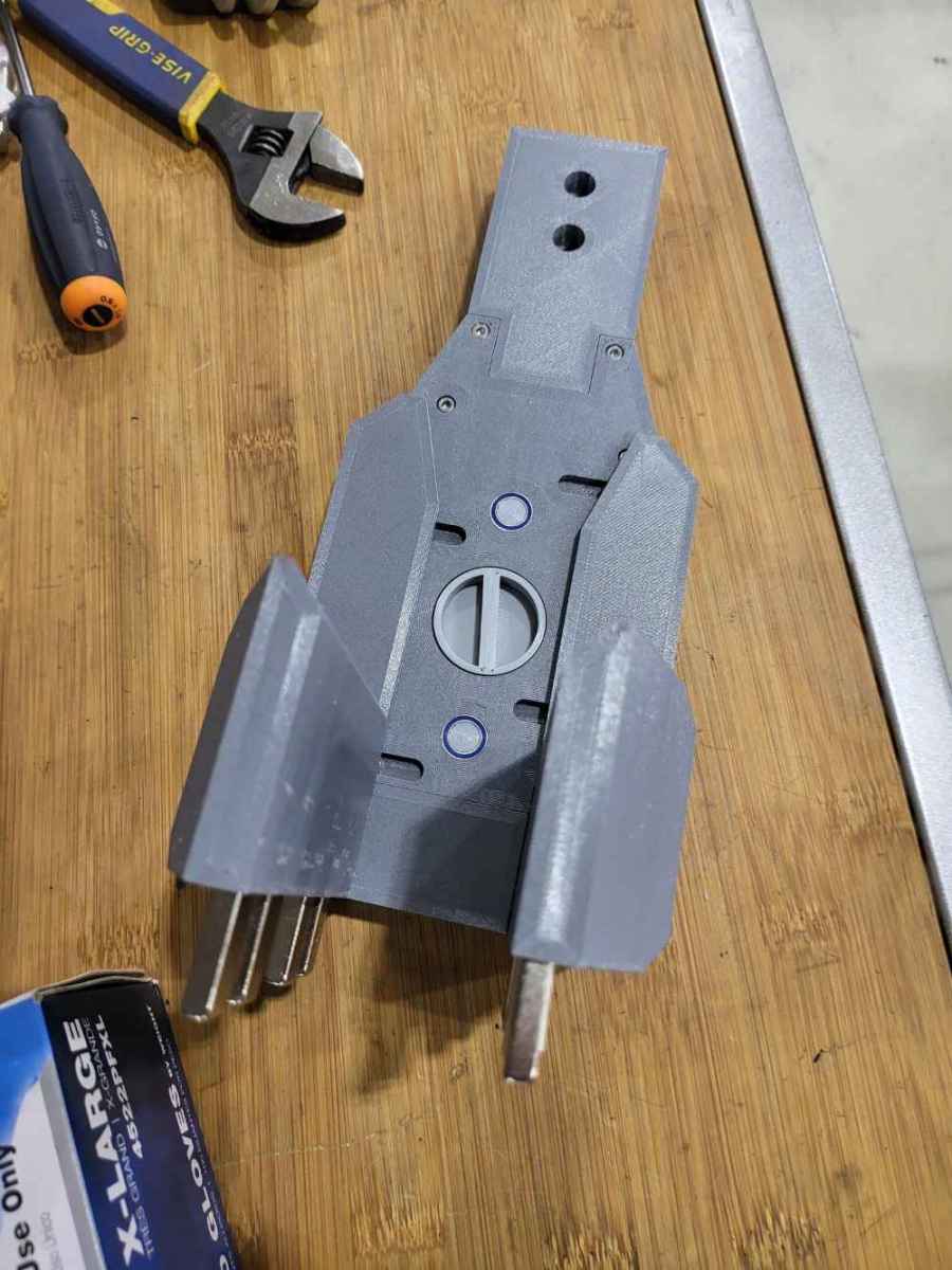 I designed in CAD and 3D printed an adjustable width magnetic parts separator . The original design was a solid aluminum non adjustable piece. This design allows the operator to reach in and adjust the width with a dial for different size parts.