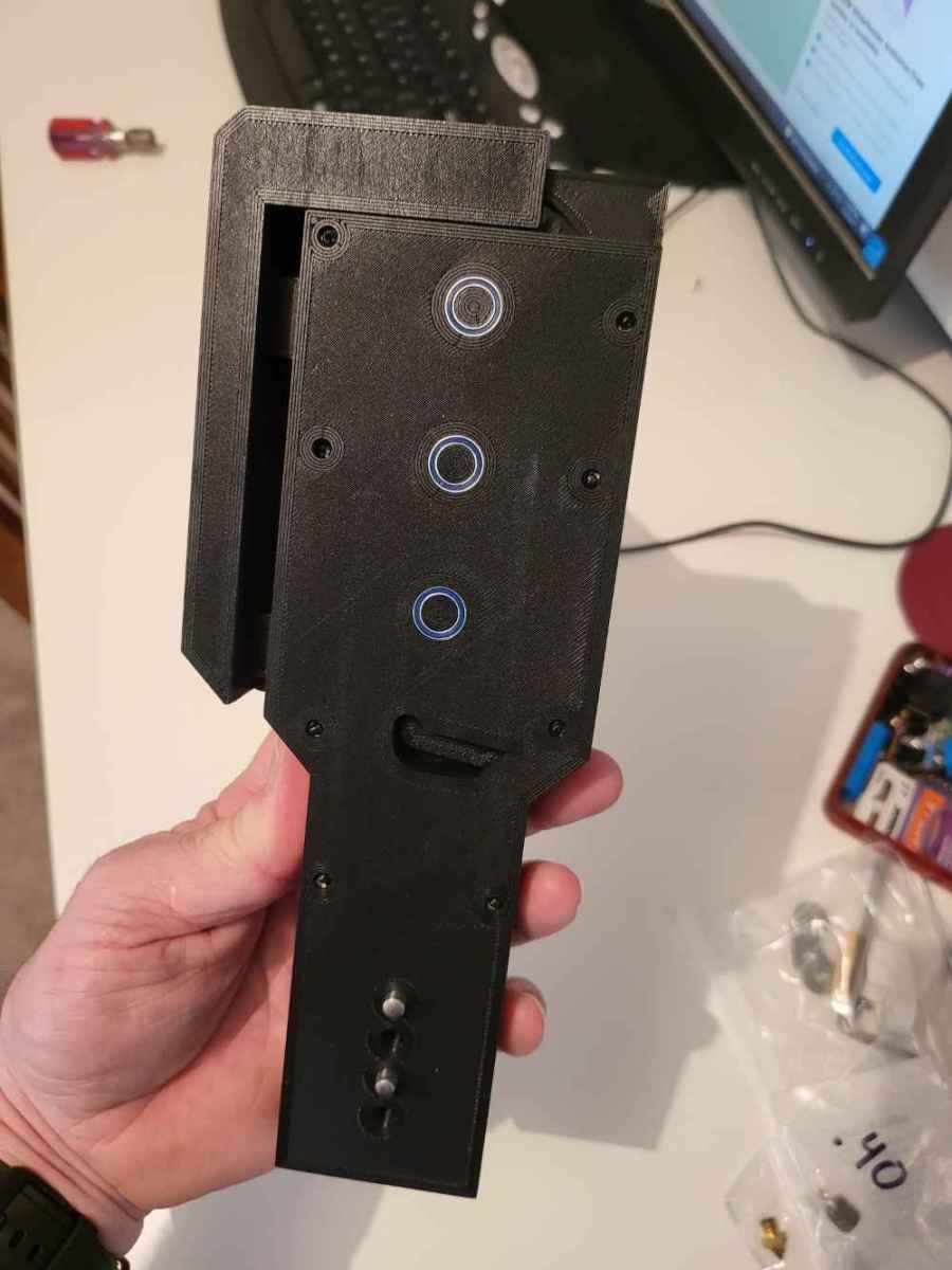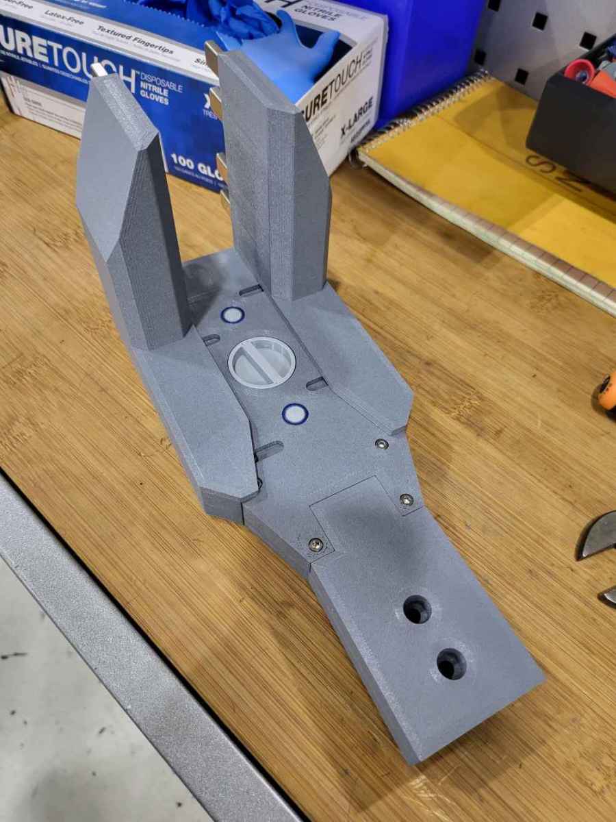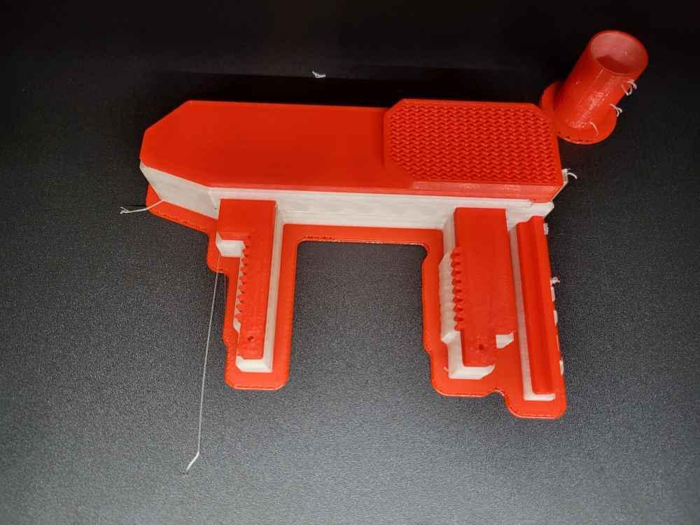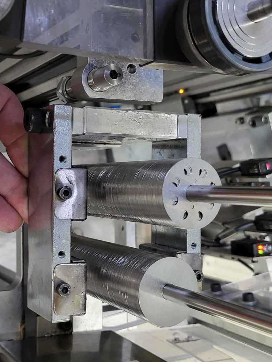 I designed in CAD and 3D printed an adjustable width magnetic parts separator . The original design was a solid aluminum non adjustable piece. This design allows the operator to reach in and adjust the width with a dial for different size parts.
