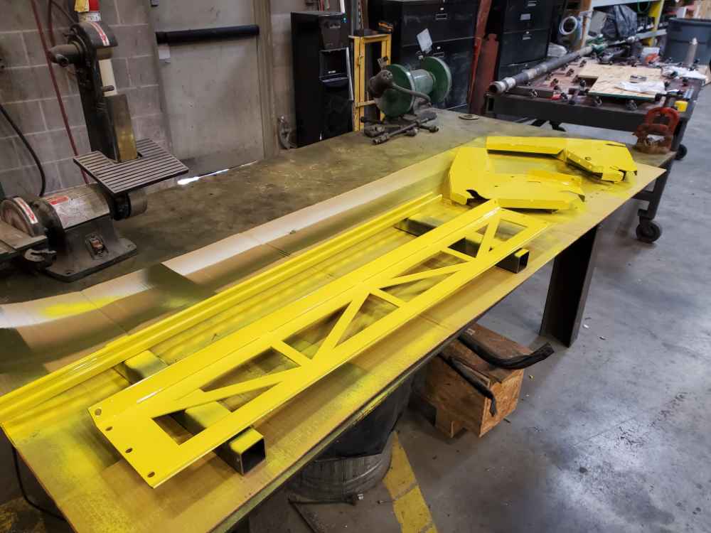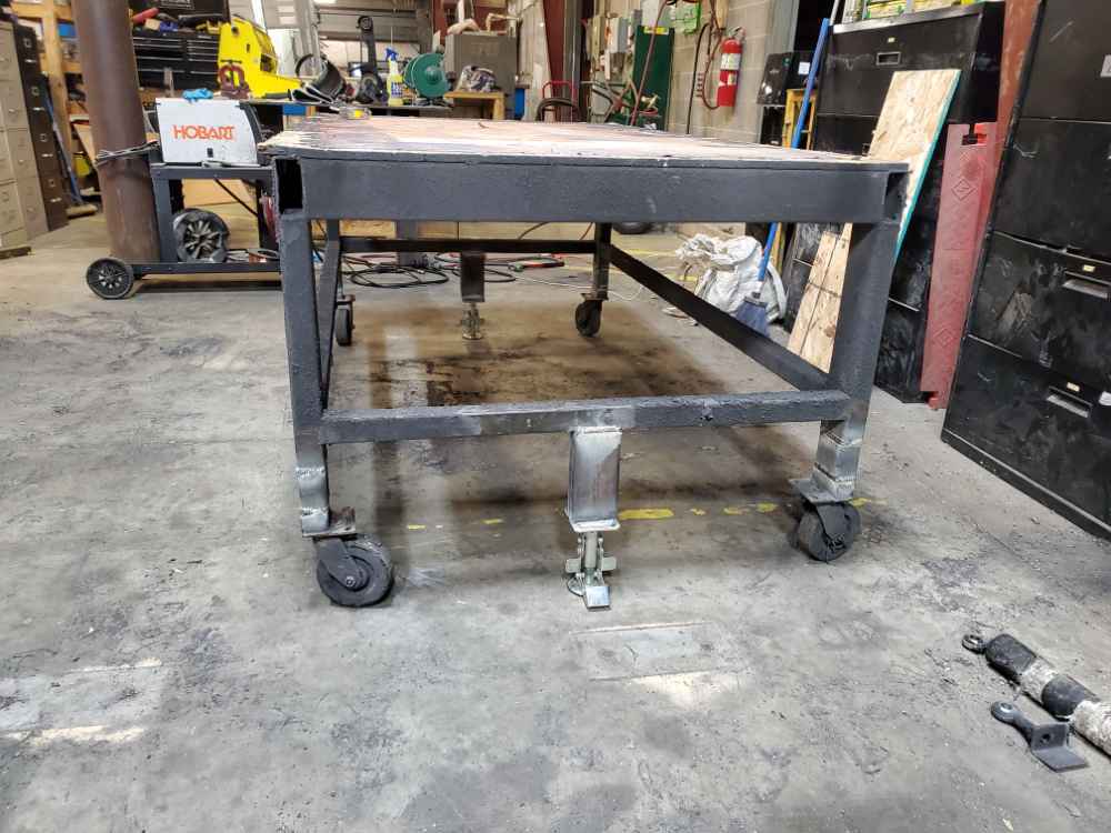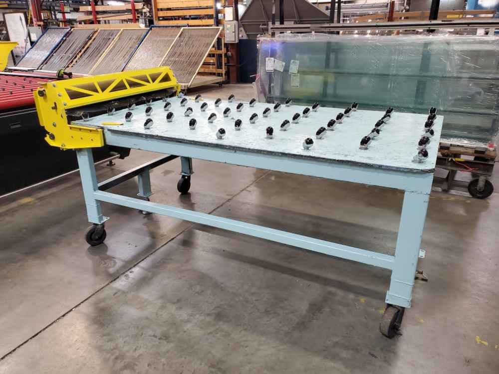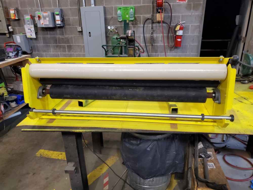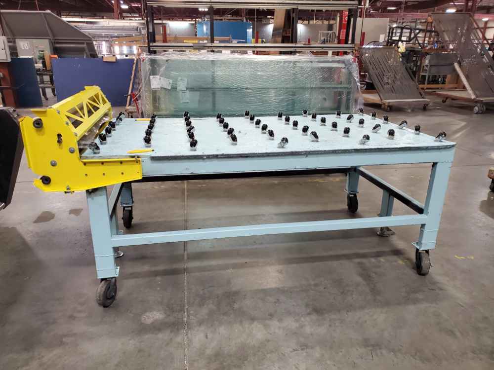 I designed and built an Industrial plastic wrapper for wrapping glass per clients requests. I designed it in CAD and cut the parts on a CNC water jet cutter and bent the parts at the stitched seams and bolted it together where the holes lined up. I modified an old table on wheels we had and bolted the wrapper to it.