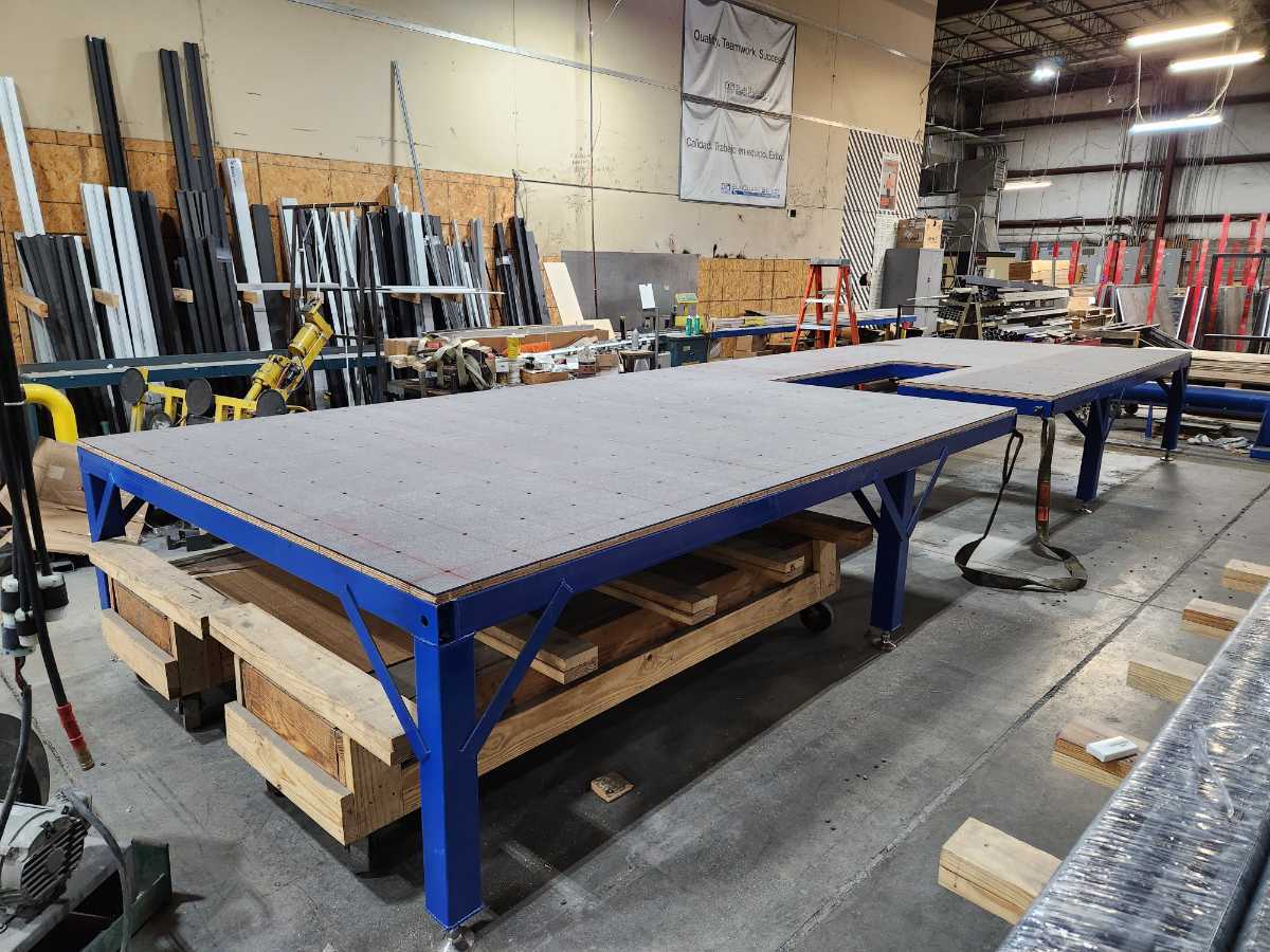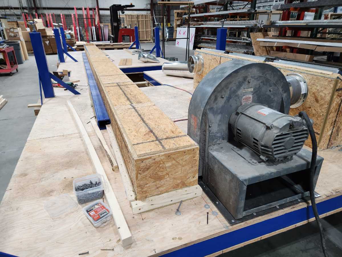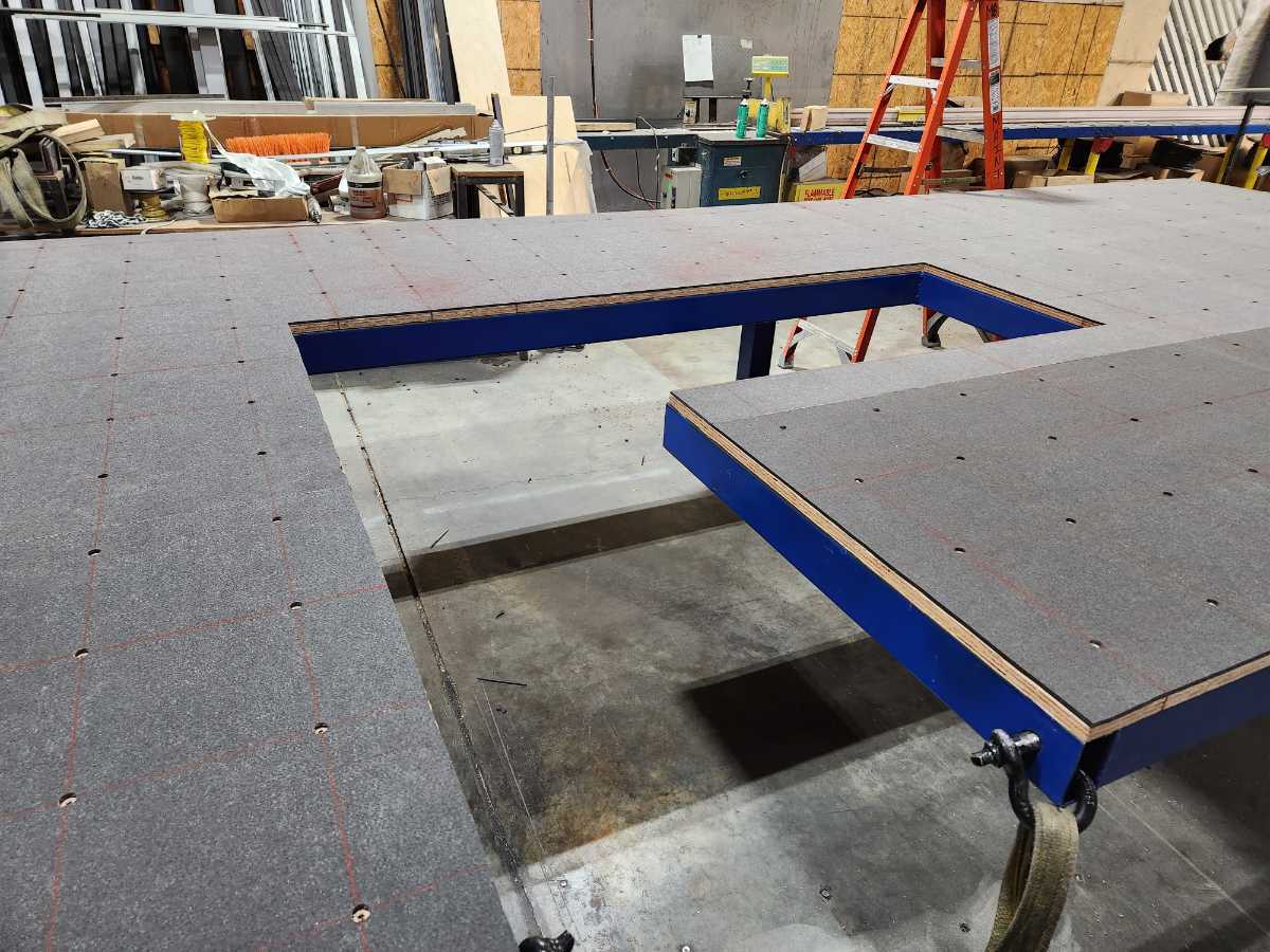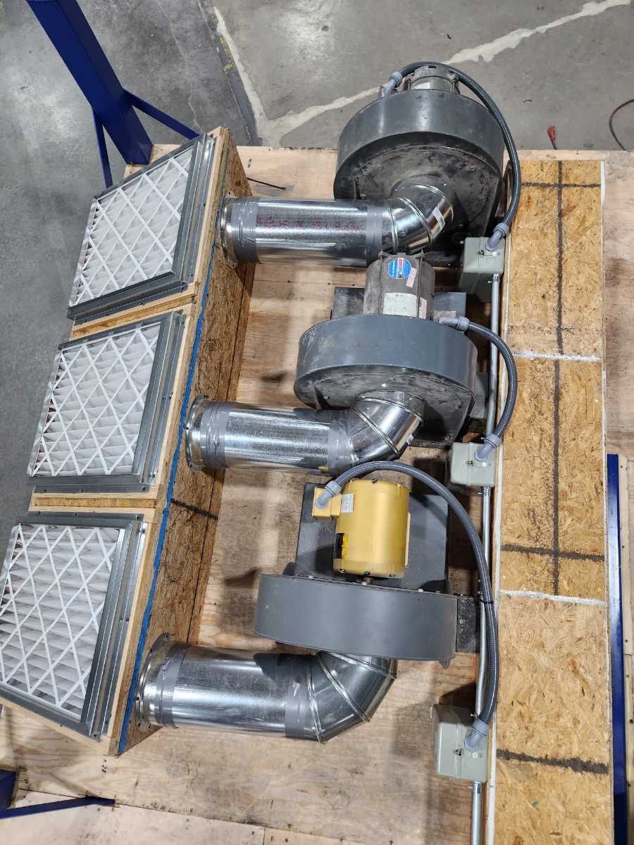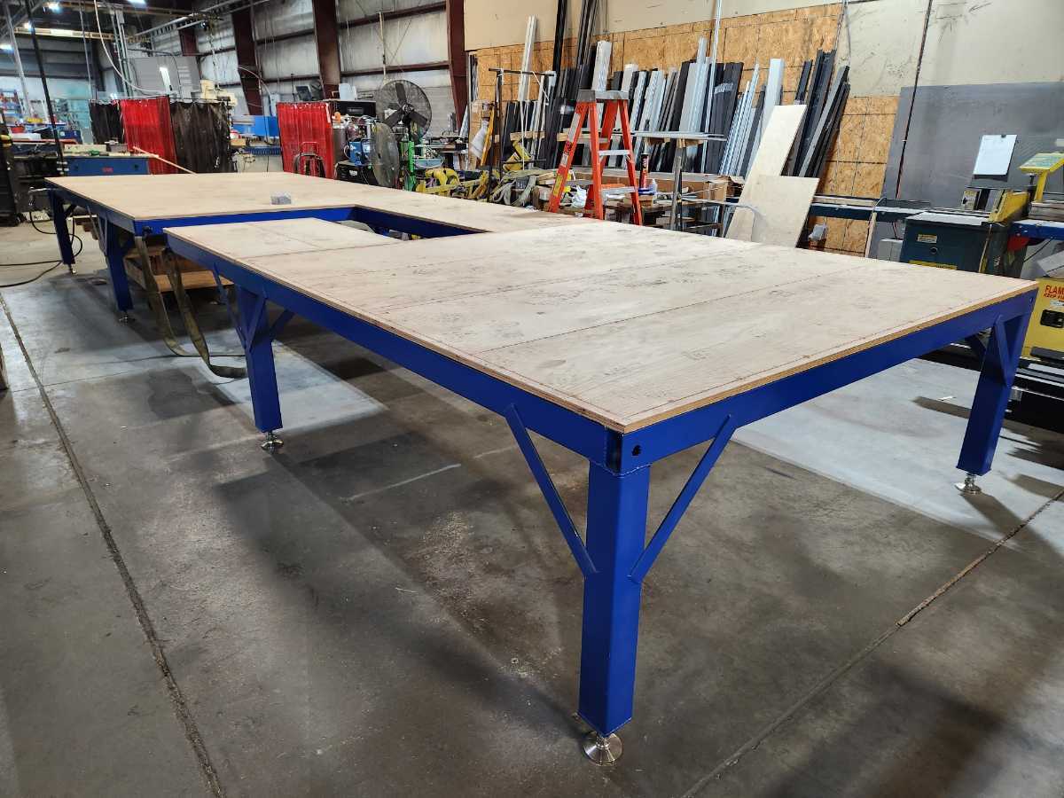 This is a seamer float table I designed for work. The blower motors are attached to the bottom side of the table along with the air filters to prevent clutter under the table. With it designed this way there is nothing on the ground allowing for easy cleanup with a broom or an air gun.