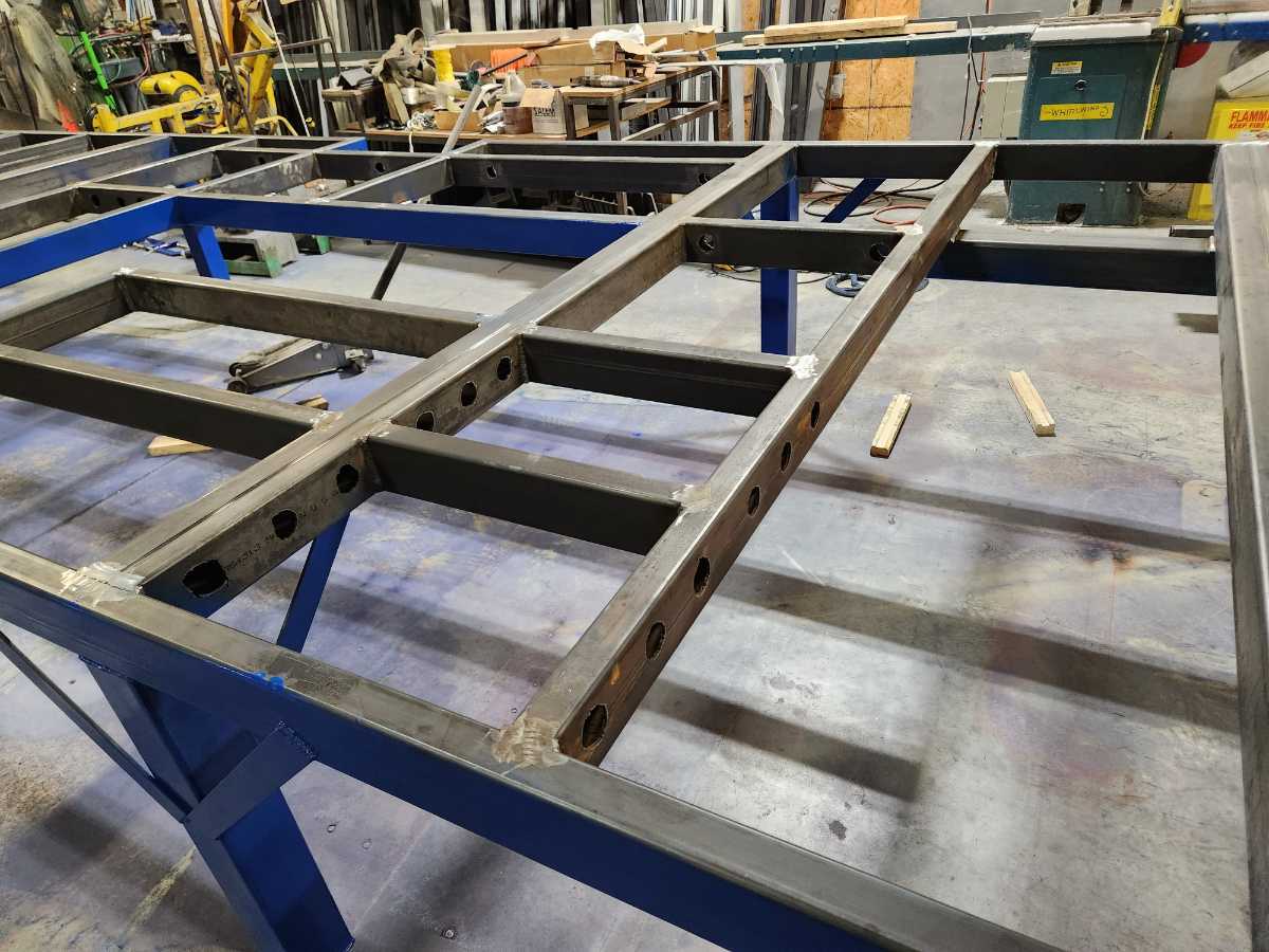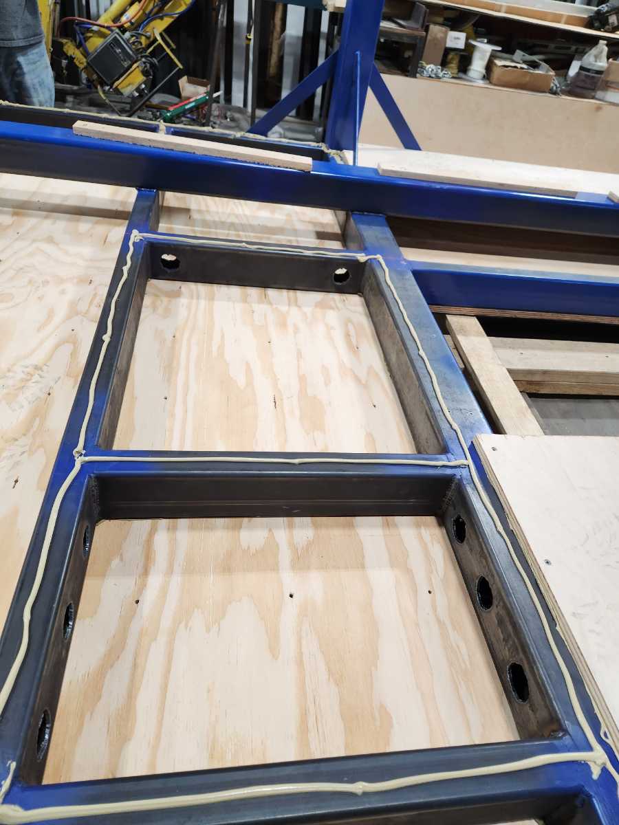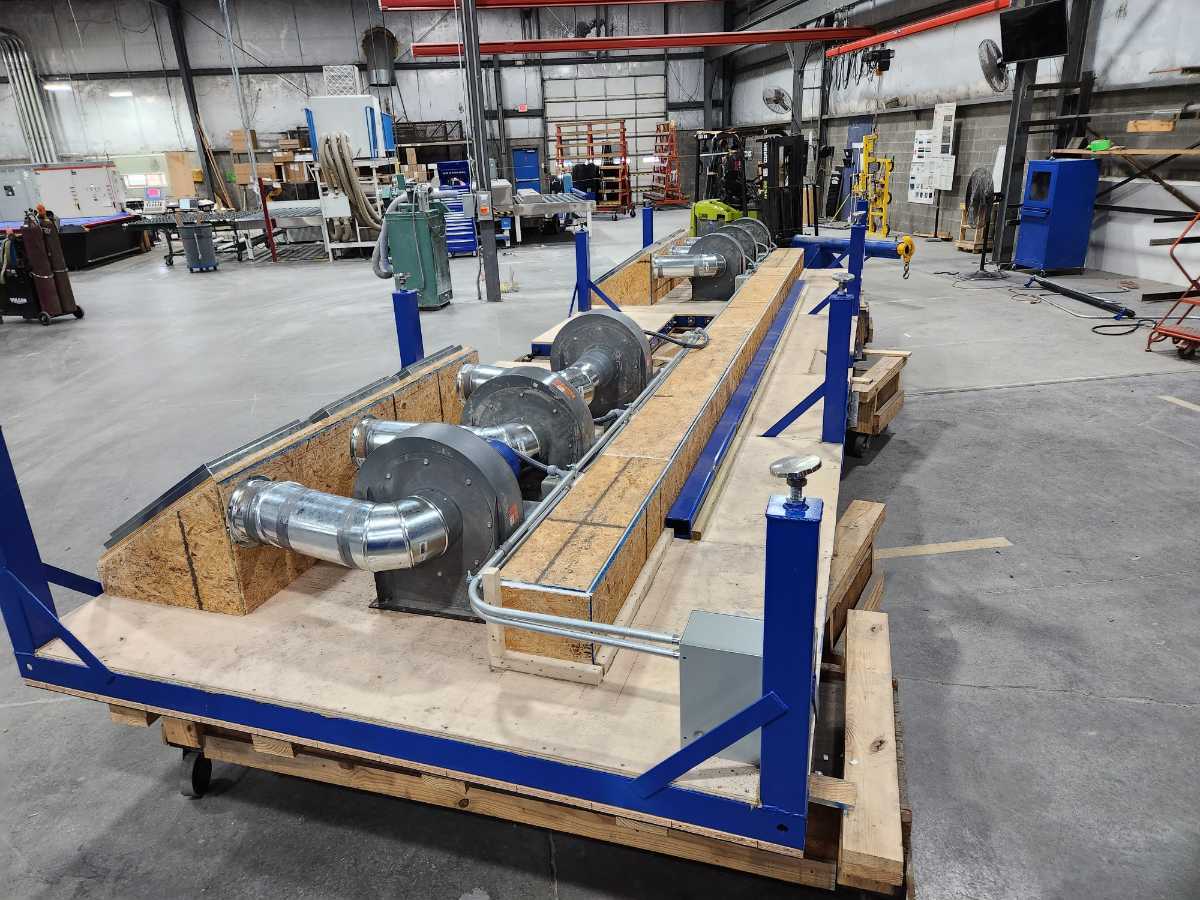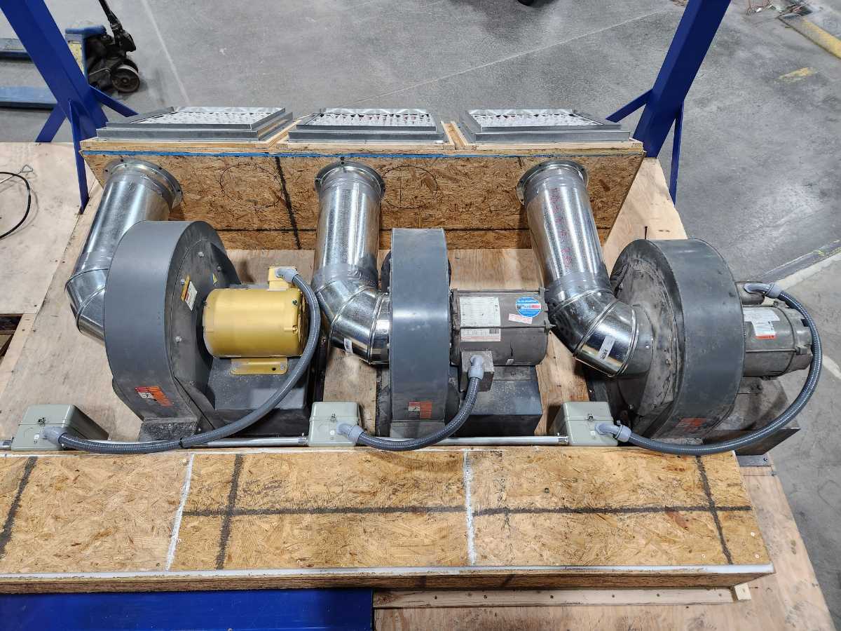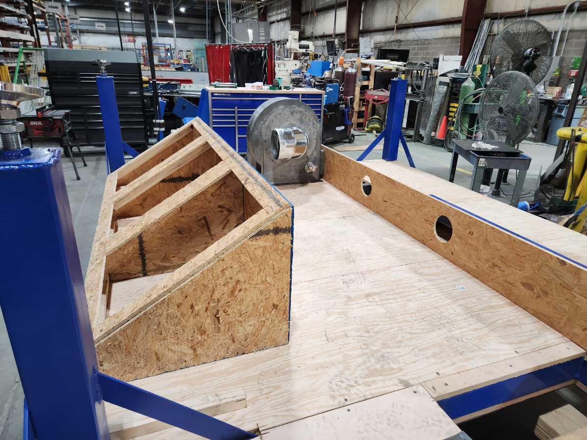 This is a seamer float table I designed for work. The blower motors are attached to the bottom side of the table along with the air filters to prevent clutter under the table. With it designed this way there is nothing on the ground allowing for easy cleanup with a broom or an air gun.