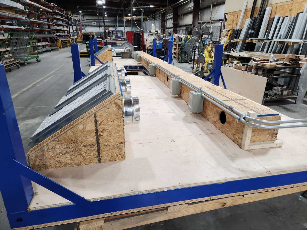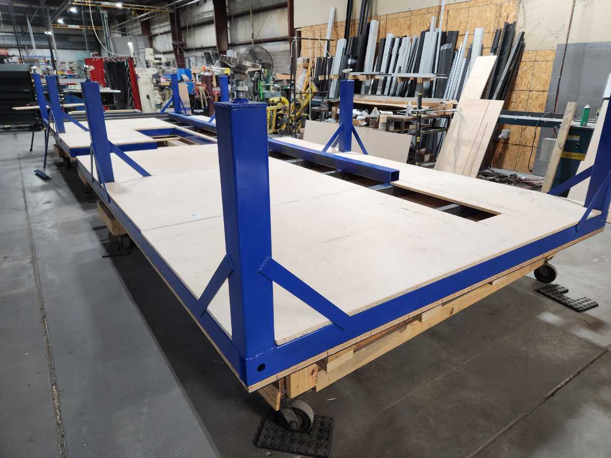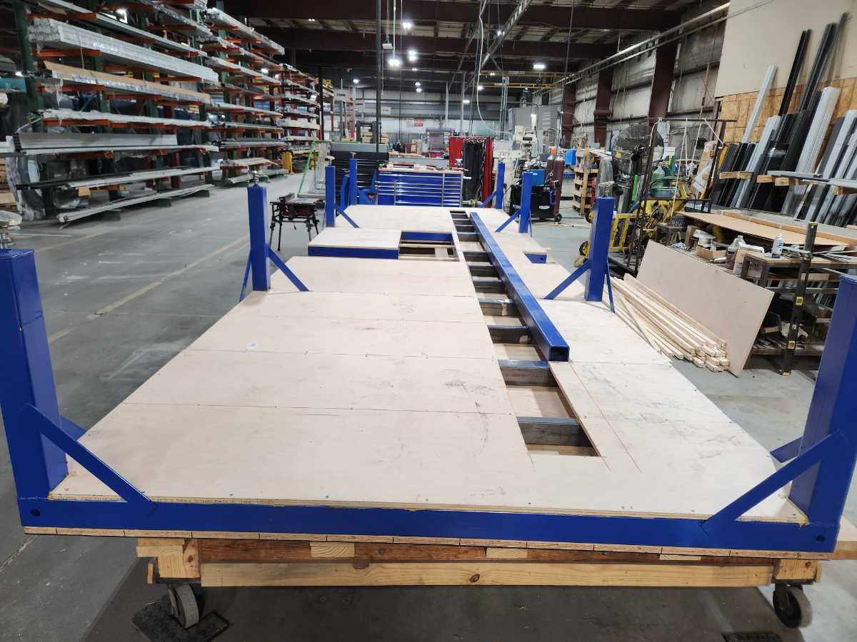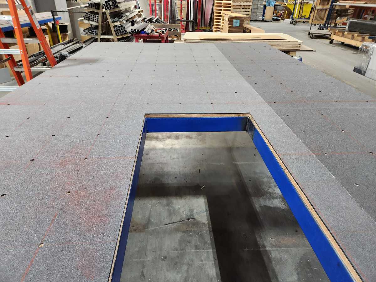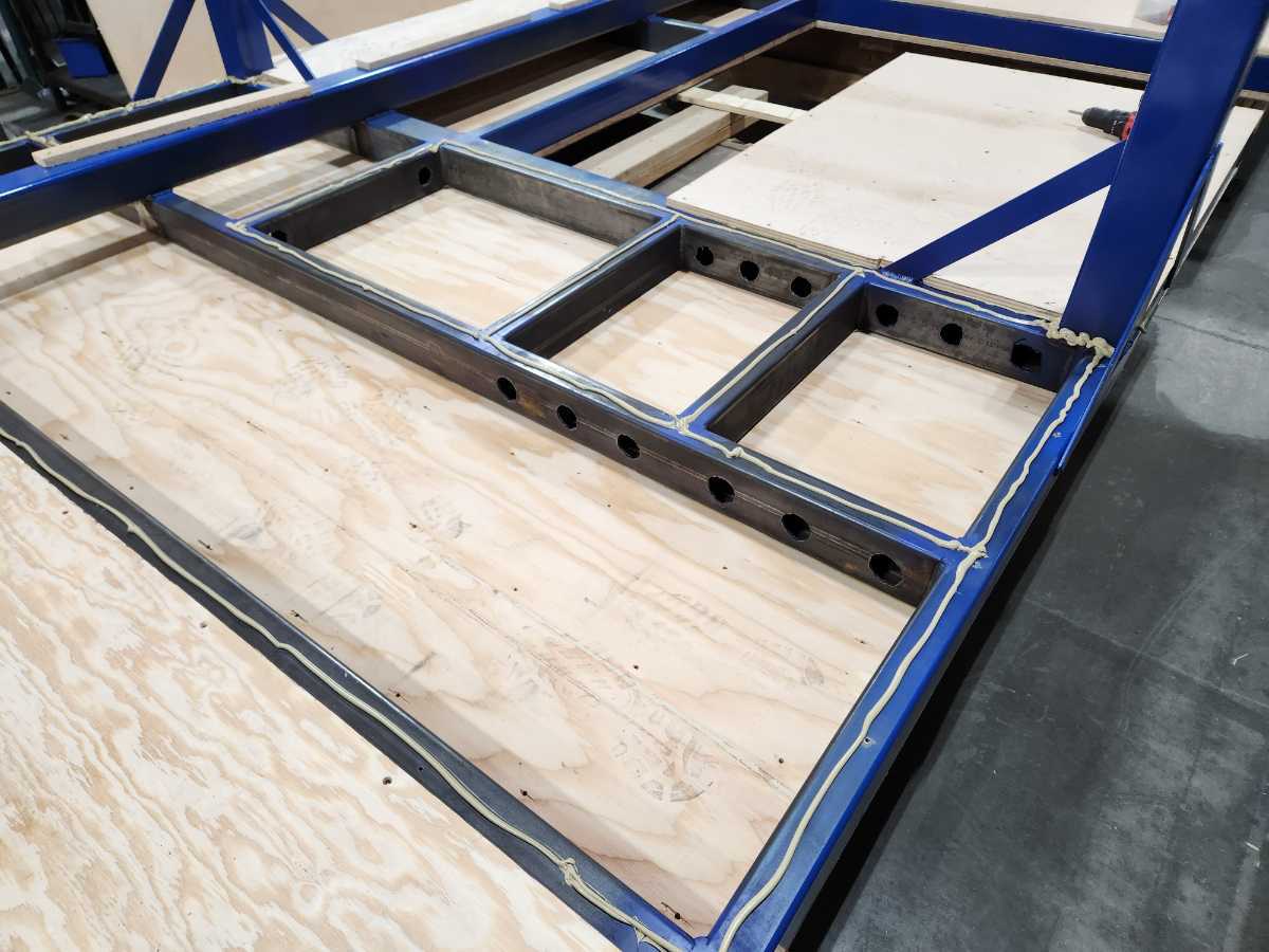 This is a seamer float table I designed for work. The blower motors are attached to the bottom side of the table along with the air filters to prevent clutter under the table. With it designed this way there is nothing on the ground allowing for easy cleanup with a broom or an air gun.